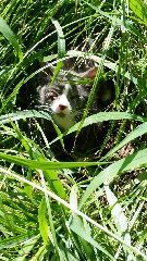 Poi oggi lo portata la prima volta fuori sul terrazzo dove c'è il giardino recintato, era molto interessata e si è goduto un pò di sole ...
